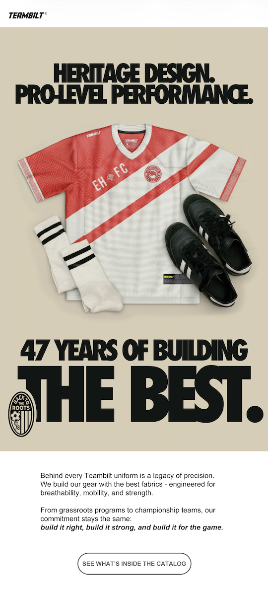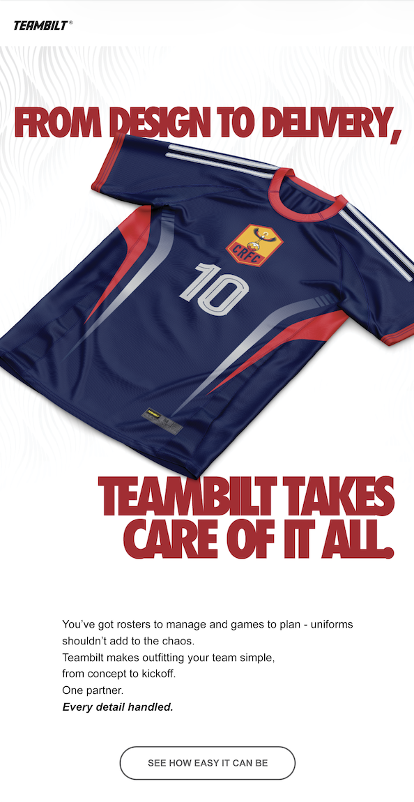 Teambilt is a performance athletic brand specializing in custom team uniforms and apparel. Their focus is on high-quality, durable gear designed to keep athletes performing at their best—on and off the field.